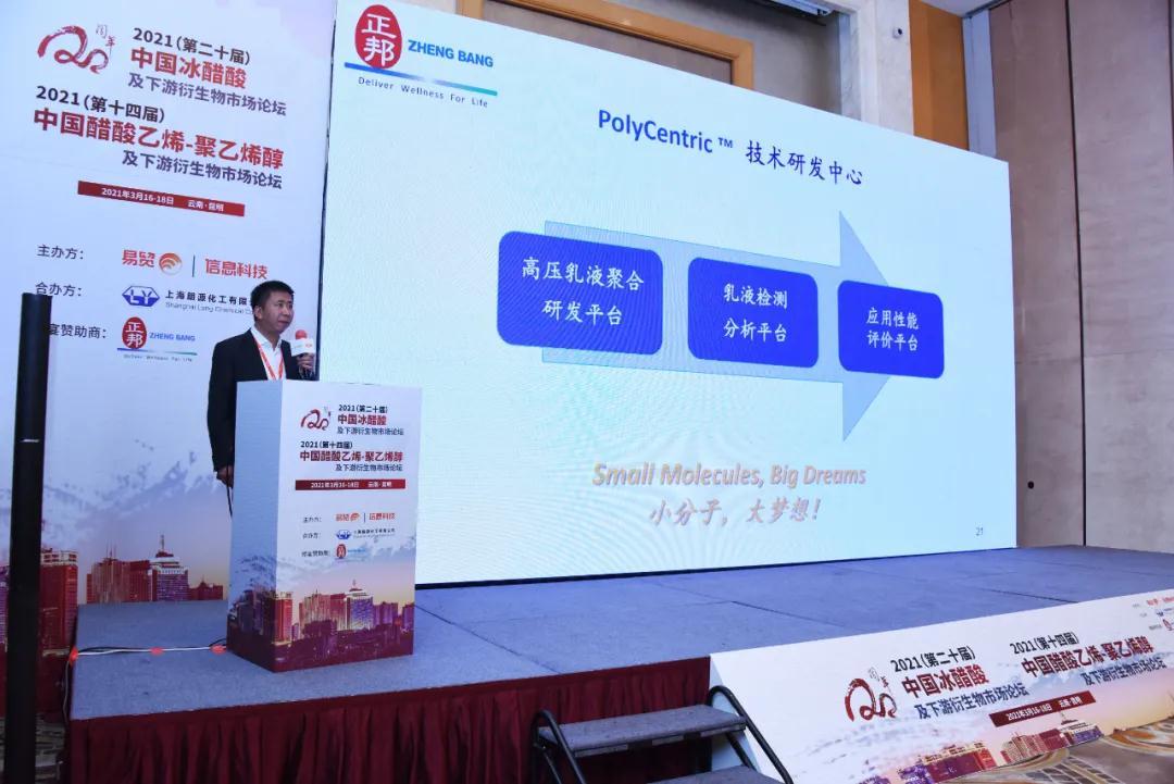 在這次會議(yì)中,諸多行業代表就(jiù)論壇議(yì)題,分(fēn)享了對現今市場的分(fēn)析與展望。雲南(nán)正邦科(kē)技生(shēng)産的水性VAE乳液,爲醋酸乙烯下遊衍生(shēng)産品,正邦也時刻關注醋酸乙烯相(xiàng)關市場的動态與發展。此次,正邦科(kē)技的王壽元董事(shì)長與各位參會代表一同回顧了2020年(nián)VAM市場,同時也分(fēn)享了VAE乳液新的應用方向,以及正邦科(kē)技PolyCentric®高壓聚合開放(fàng)式研發平台,冀希望借助精心打造的高壓聚合研發平台,正邦科(kē)技能更好地服務于市場和廣大(dà)客戶。
